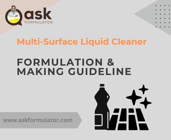 Our Multi-Surface Liquid Cleaner Formulation is a scientifically balanced, high-performance cleaning solution designed for use across various surfaces, including glass, tile, plastic, stainless steel, laminate, ceramic, and sealed wood. This versatile cleaner cuts through grease, grime, and stains, offering a streak-free, fast-drying finish. It is available as a concentrate or ready-to-use solution, ideal for bulk manufacturing or retail packaging.